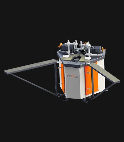 SCHTEC CP 290: Precise 90° aluminum joints with 7-ton/cm² force. Quick blade change, foot pedal control, and front mitre system ensure efficiency for profiles up to 220 mm.